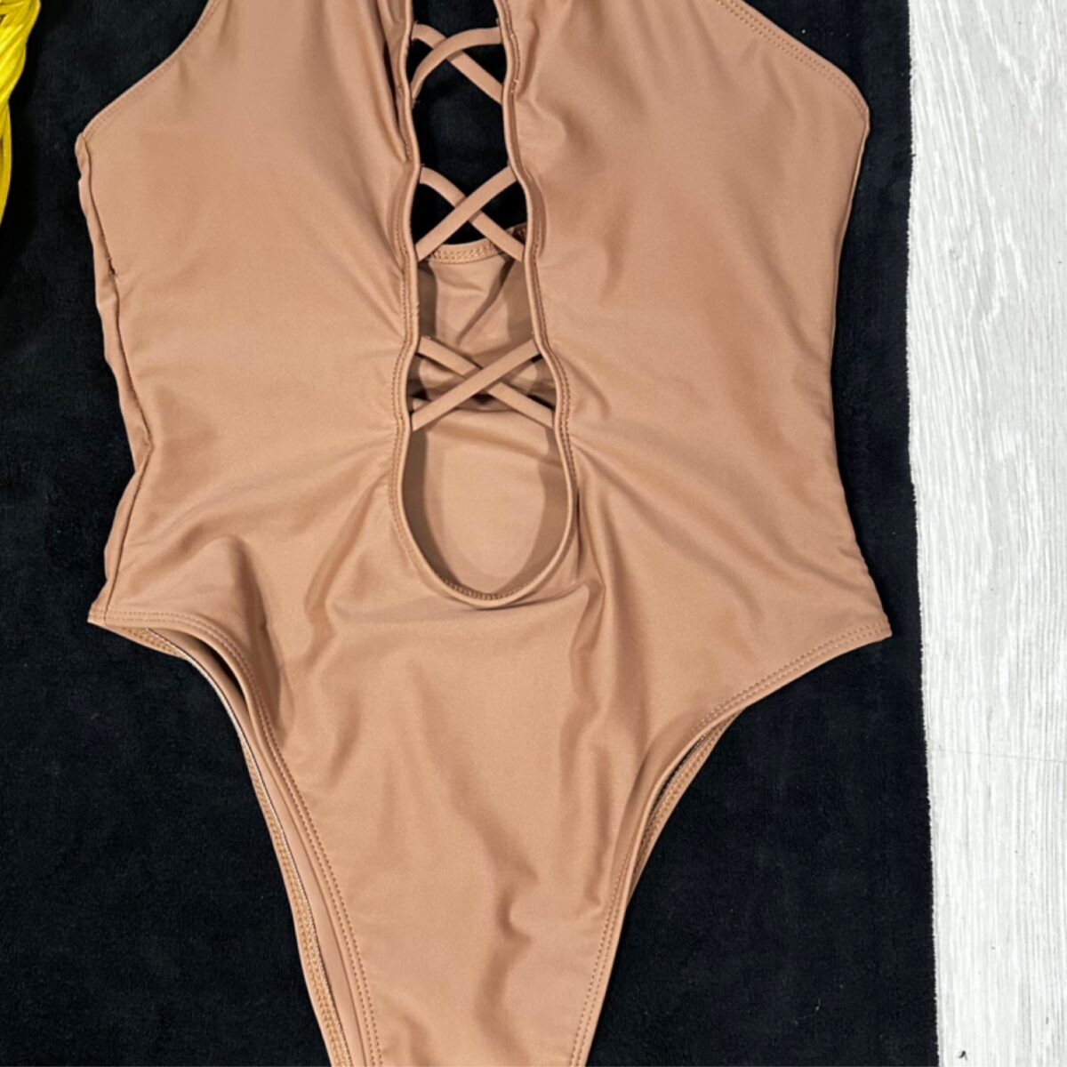 Maillot de bain une-pièce doré avec un nœud élégant sur l'épaule pour un style raffiné et unique